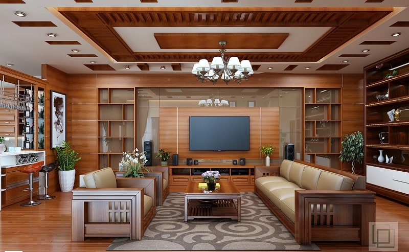 Nội thất gỗ phòng khách không chỉ đem đến vẻ sang trọng trong thẩm mỹ mà còn là nội thất cao cấp, tiện nghi trong căn phòng. Việc kết hợp những món đồ nội thất gỗ như: kệ tivi, bàn trà gỗ, bàn ghế gỗ,… sẽ đem đến sự hài hoà và ấm cúng cho căn phòng khách.