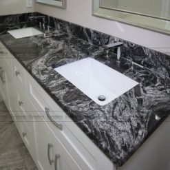 Đá granite Black Forest có nền màu đen đậm cùng các vệt vân màu trắng chạy khắp bề mặt. Đây là một dòng đá tự nhiên đặc trưng, biến thể cao khi thường không có 2 tấm đá slab giống hoàn toàn nhau. Chúng được khai thác tại Brazil với độ cứng cao, bền, thích hợp cho các hạng mục ốp lát cầu thang, bếp, lavabo,…