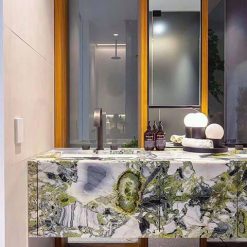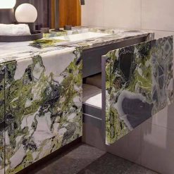 Đá marble tự nhiên Ice Green là dòng đá màu xanh ấn tượng, kết hợp từ tinh thể với nhiều màu sắc như xanh lá, trắng, đen, xám,… đầy ấn tượng. Chúng phù hợp làm đá ốp lát trang trí tường, điểm nhấn nền nhà, hay bàn đá lavabo,…