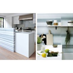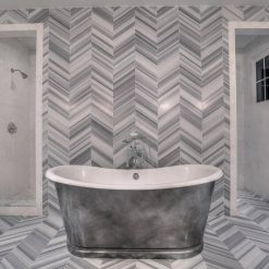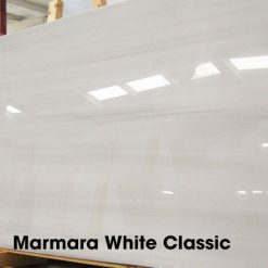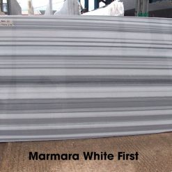 Đá marble Marmara đến từ Turkey với các đường vân xám/xanh song song độc đáo trên nền trắng ứng dụng làm đá ốp tường, đá lát nền, phòng tắm,…