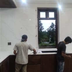 Sản phẩm mang lại vẻ đẹp đẳng cấp, sang trọng cho không gian bếp của bạn với nền trắng cùng những đường vân tinh tế y hệt như đá tự nhiên nhưng có độ bền, độ cứng, độ dẻo hơn hẳn đá tự nhiên.