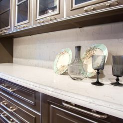 Đá quartz (thạch anh) Bianco Venato nhân tạo nhập khẩu cao cấp nằm trong bộ sưu tập Natural của Vicostone với nền đá trắng cùng các đường vân mỏng nhẹ như chỉ thay bằng các đường vân lớn như các dòng đá tự nhiên khác. Chúng thích hợp sử dụng cho hạng mục đá ốp bếp