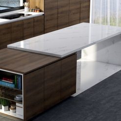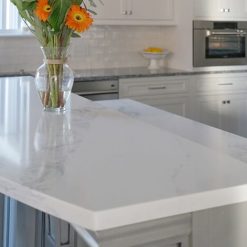 Đá quartz (thạch anh) Borghini nhân tạo cao cấp từ Vicostone thuộc bộ sưu tập Exotic với sự pha trộn của nền đá trắng cùng các đường vân màu xám như các dòng chảy xuyên suốt bề mặt tấm đá. Chúng phù hợp cho các hạng mục ốp lát đá nội ngoại thất, đặc biệt là đá ốp bếp