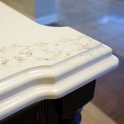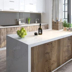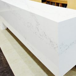 Đá quartz Statuario nhân tạo màu trắng của Vicostone với sự pha trộn của nền đá trắng, kết hợp cùng các đường vân rối màu xám, tái hiện hình ảnh của dòng đá marble Staturio nổi tiếng. Đây là dòng đá thích hợp cho các hạng mục ốp lát nội ngoại thất, đặc biệt là đá ốp bếp