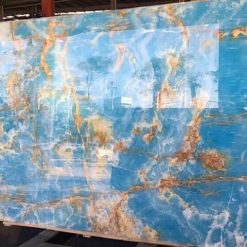Đá xuyên sáng Blue Onyx là một dòng đá tự nhiên với màu sắc đặc biệt, nền xanh như trời với các đường vân trắng như mây tạo nên một bức tranh đá tự nhiên say đắm lòng người. Chúng là dòng đá cao cấp phù hợp cho các hạng mục trang trí ốp lát nội thất.